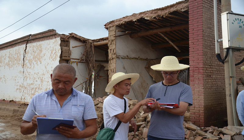 接到災(zāi)情通報(bào)以后,我公司結(jié)構(gòu)所負(fù)責(zé)人陳廷乾同志帶領(lǐng)技術(shù)人員在第一時(shí)間奔赴該地,立即著手展開(kāi)災(zāi)后房屋應(yīng)急鑒定工作。他們冒著洪水退去隨時(shí)可能引發(fā)疫情的危險(xiǎn),不辭辛勞,挨家挨戶(hù)進(jìn)去排查,與村民們?cè)谑軗p的房屋內(nèi)、在沖毀的道路旁、在倒塌的門(mén)樓邊耐心詢(xún)問(wèn),詳細(xì)了解受災(zāi)情況,獲得了第一手寶貴的數(shù)據(jù)信息。
