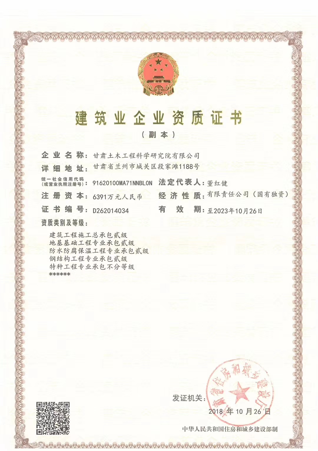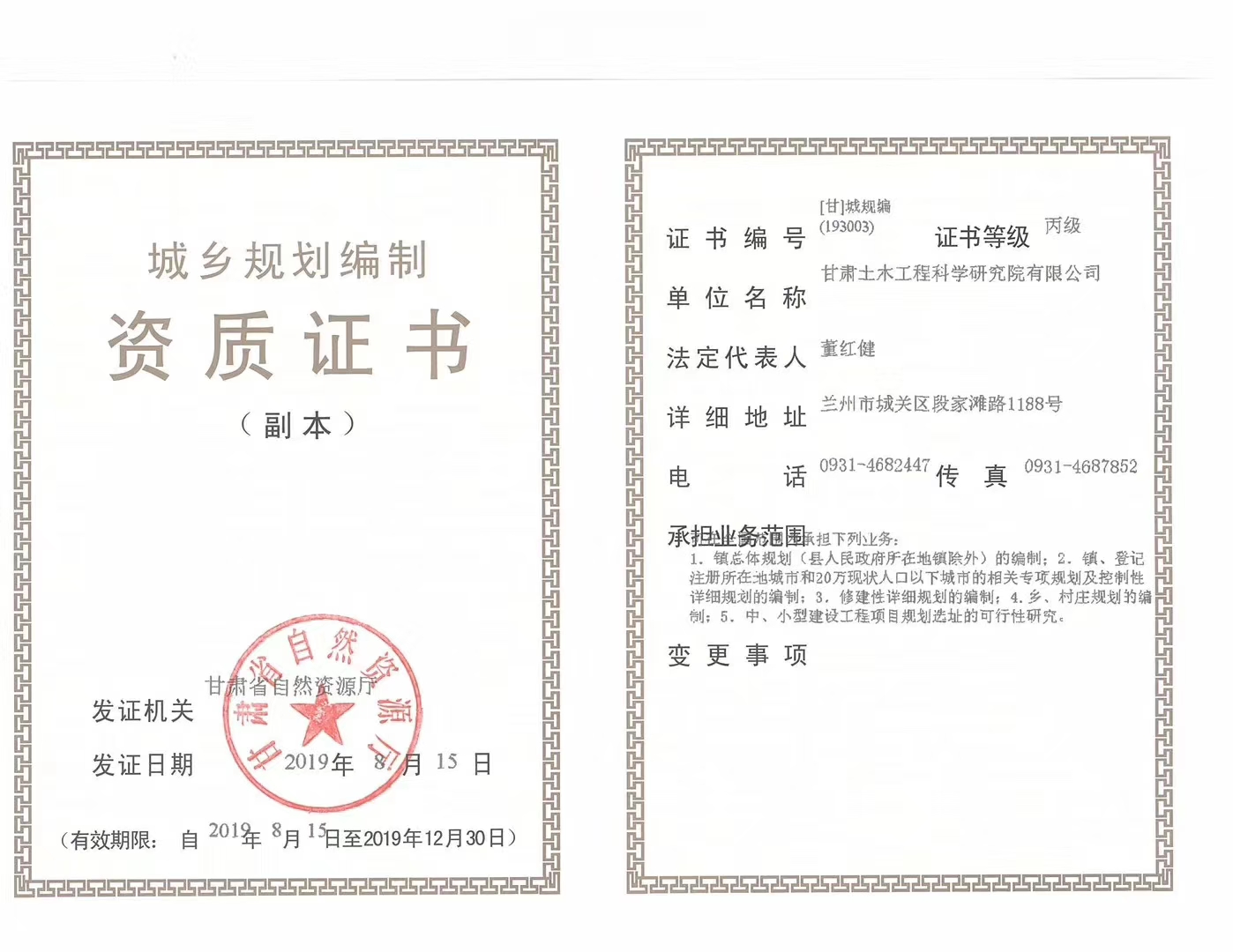 近日,公司建筑工程施工總承包貳級(jí)資質(zhì)和城鄉(xiāng)規(guī)劃丙級(jí)資質(zhì)獲甘肅省住房和城鄉(xiāng)建設(shè)廳和甘肅省自然資源廳批準(zhǔn),標(biāo)志著公司資質(zhì)建設(shè)取得重大進(jìn)展。