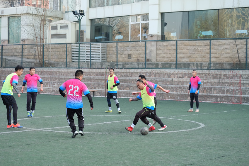 本次比賽由職能、設(shè)計(jì)聯(lián)隊(duì)對(duì)陣巖土、檢測(cè)聯(lián)隊(duì)。雖然天氣嚴(yán)寒,但大家在球場(chǎng)上的熱情絲毫不減。隊(duì)員們激烈拼搶,步履如飛,運(yùn)球熟練,傳球精彩,搶斷漂亮,射門(mén)精準(zhǔn)。比賽波瀾跌宕,賽場(chǎng)精彩紛呈。最終巖土、檢測(cè)聯(lián)隊(duì)技高一籌以8:7獲得勝利。