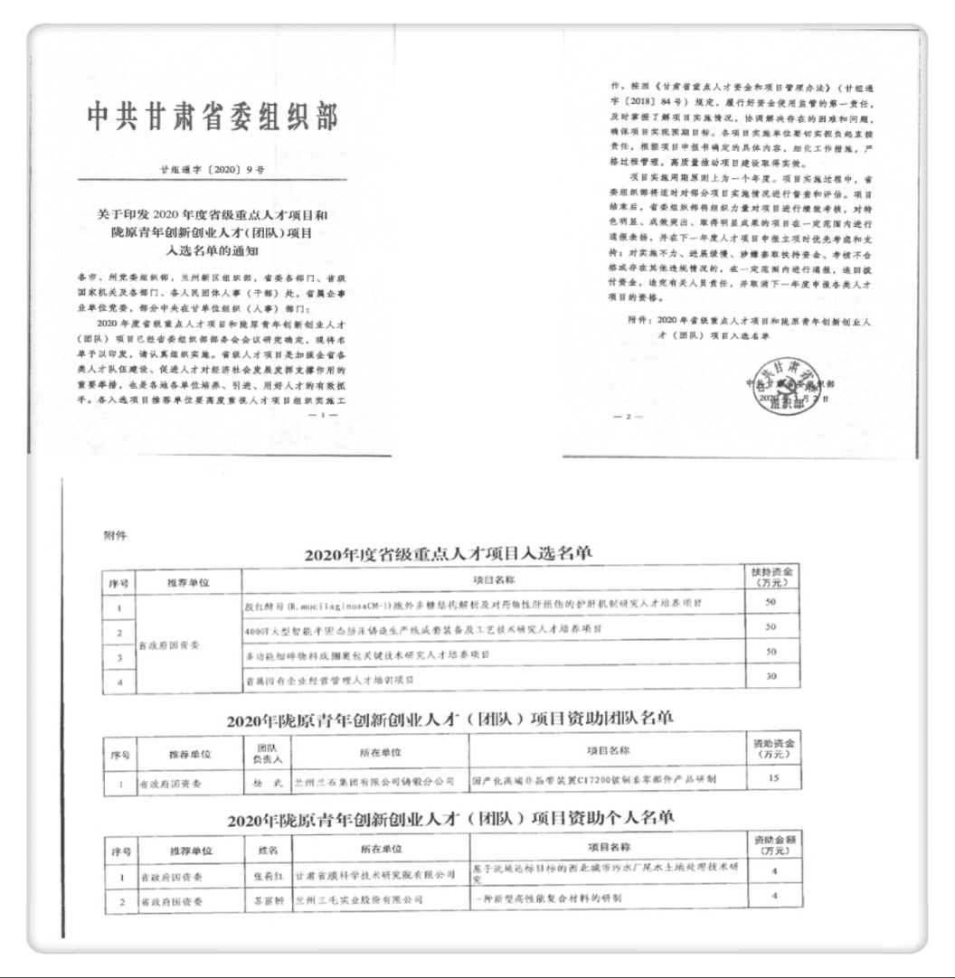 隴原青年創(chuàng)新人才計(jì)劃是中共甘肅省委、甘肅省人民政府加強(qiáng)全省各類人才隊(duì)伍建設(shè)、促進(jìn)人才對(duì)經(jīng)濟(jì)社會(huì)發(fā)展發(fā)揮支撐作用的重要舉措,此次入選將對(duì)我公司高性能復(fù)合材料項(xiàng)目的深度研發(fā)及推廣應(yīng)用起到積極的促進(jìn)作用,并將有力助推公司人才隊(duì)伍建設(shè)和科技研發(fā),進(jìn)一步增強(qiáng)公司服務(wù)地方經(jīng)濟(jì)社會(huì)發(fā)展的能力。