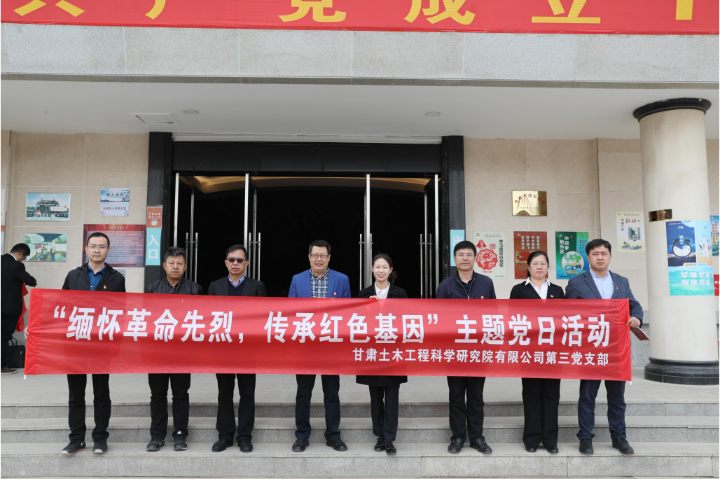 2021 年 4 月 28 日甘肅土木工程科學研究院有限公司第三黨支部組織黨員到蘭州市烈士陵園參加“緬懷革命先烈,傳承紅色基因”主題黨日活動。支部黨員走進紅色教育基地參觀見學,瞻仰革命先烈留下的遺跡,首先瞻仰了紀念碑,隨后參觀了紀念館。在紀念館內(nèi),一幅幅照片、一件件展品、一面面場景,生動再現(xiàn)了革命先烈英勇抗敵的情景,在場人員無不為當年革命前輩們的英勇壯舉所震撼。在鮮紅的黨旗下,黨員佩戴黨徽,舉起右手、握緊拳頭,莊嚴宣誓:“我志愿加入中國共產(chǎn)黨……永不叛黨!”