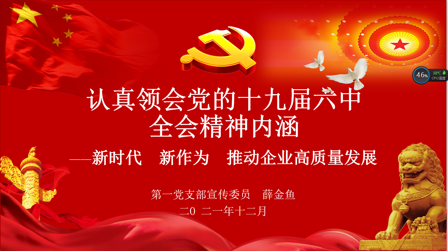 2021年12月15日下午,第一黨支部在公司第一會(huì)議室開展了支部委員講黨課活動(dòng),宣傳委員薛金魚同志以《認(rèn)真領(lǐng)會(huì)當(dāng)?shù)氖艑昧腥珪?huì)精神內(nèi)涵》為題,為第一支部全體黨員及入黨積極分子上了一堂主題鮮明、富有教育意義的黨課。