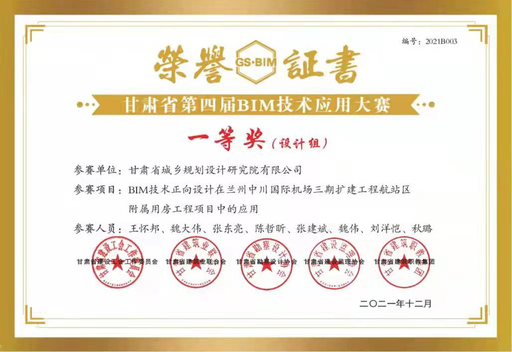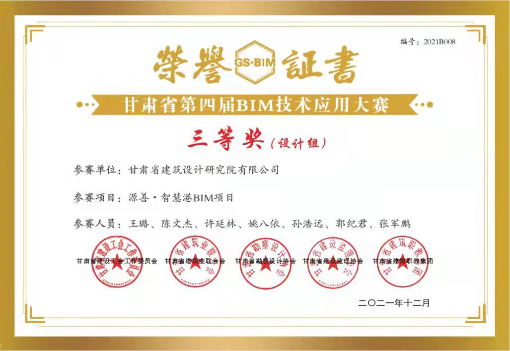 日前,甘肅省建設工會工作委員會、甘肅省建筑業(yè)聯(lián)合會、甘肅省勘察設計協(xié)會、甘肅省建設監(jiān)理協(xié)會、甘肅省建筑職教集團聯(lián)合舉辦的“2021年甘肅省職工職業(yè)技能競賽暨甘肅省第四屆BIM技術(shù)應用大賽”評選結(jié)果揭曉,甘肅省城鄉(xiāng)規(guī)劃設計研究院有限公司“BIM技術(shù)正向設計在蘭州中川國際機場三期擴建工程航站區(qū)附屬用房工程項目中的應用”獲得“BIM技術(shù)應用作品征集”比賽設計組一等獎;甘肅省建筑設計研究院有限公司“甘肅省臨洮體育訓練基地二期建設(滑冰館)項目BIM技術(shù)在總承包管理中的綜合應用”獲得二等獎,“緣善智慧港BIM項目”獲得三等獎;甘肅省建設監(jiān)理有限責任公司李燕燕獲得“BIM技術(shù)技能比賽”三等獎。