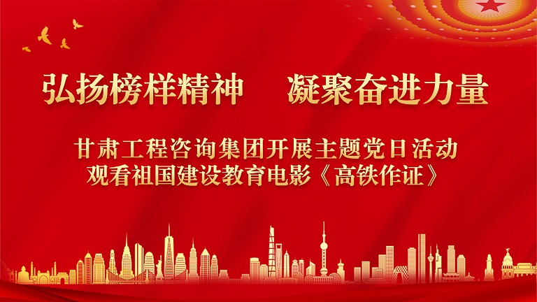 為進(jìn)一步鞏固拓展黨史學(xué)習(xí)教育成果,宣傳弘揚(yáng)“高鐵精神”,豐富“四史”教育形式,引導(dǎo)黨員干部不斷增強(qiáng)政治意識、團(tuán)隊意識和社會責(zé)任感,近日,甘肅工程咨詢集團(tuán)機(jī)關(guān)黨委組織開展“汲取榜樣精神 凝聚奮進(jìn)力量”主題黨日活動,集中觀看祖國建設(shè)教育影片《高鐵作證》,集團(tuán)機(jī)關(guān)全體干部職工50余人參加活動。