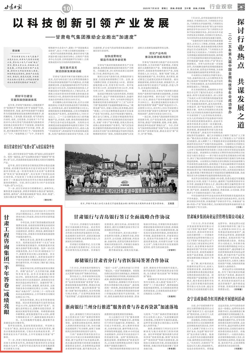 今年以來,甘肅工程咨詢集團堅決貫徹落實省委、省政府決策部署及省政府國資委相關(guān)要求,錨定目標(biāo)、加壓奮進,全力以赴拼經(jīng)濟、穩(wěn)增長、增效益,順利實現(xiàn)半年既定目標(biāo),在服務(wù)全省高質(zhì)量發(fā)展進程中展現(xiàn)出新作為。